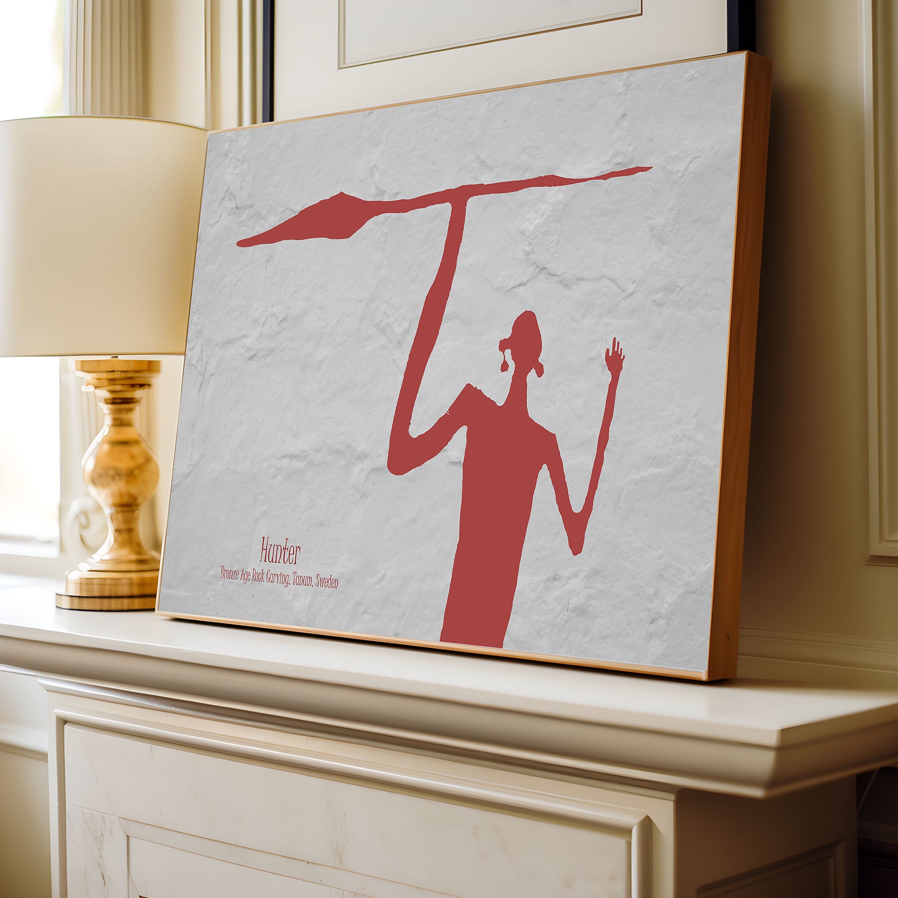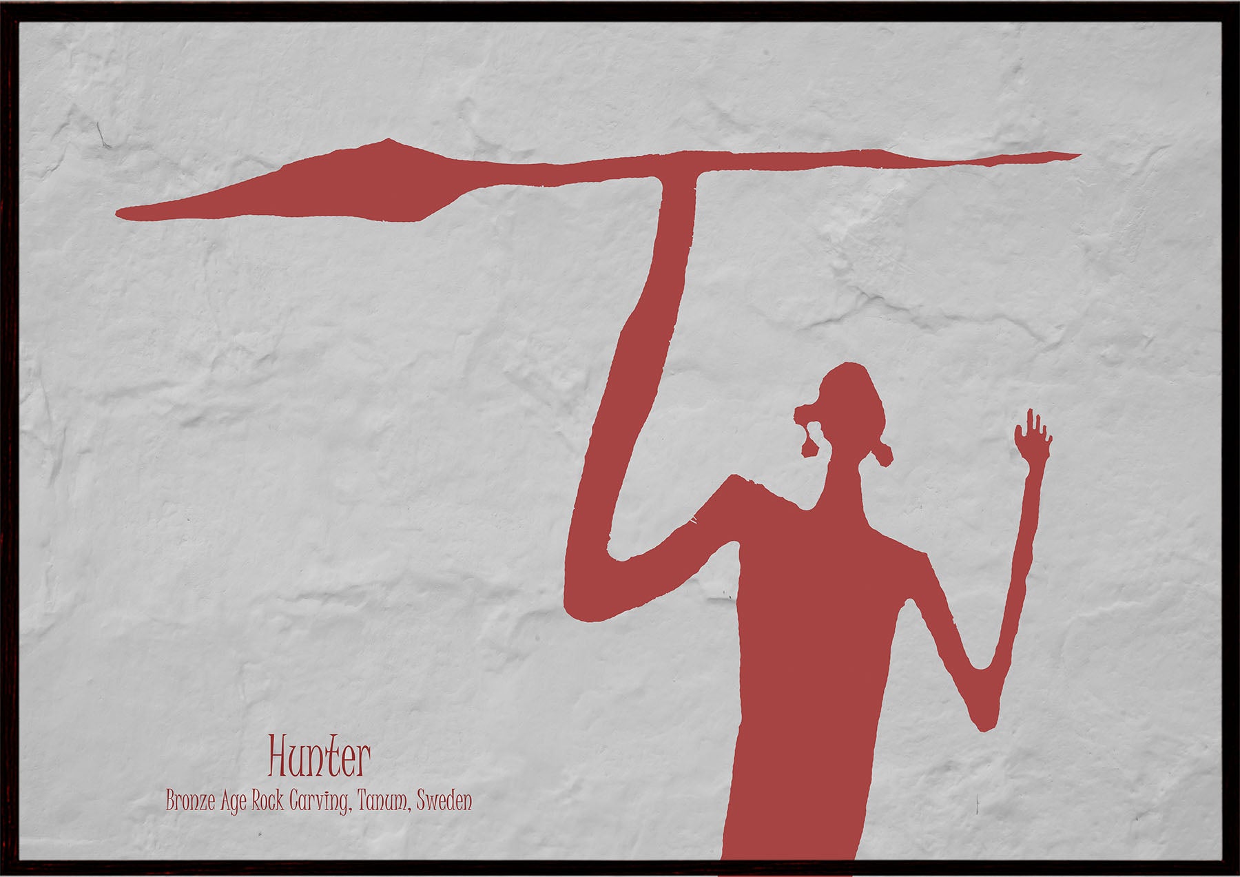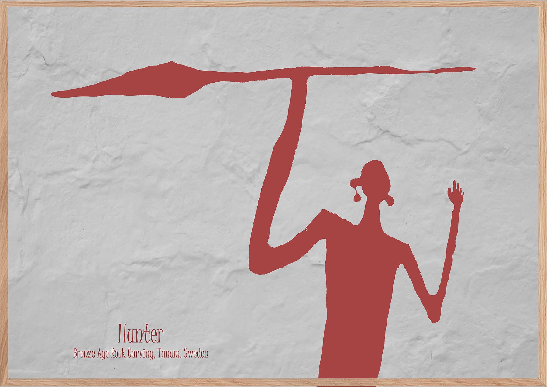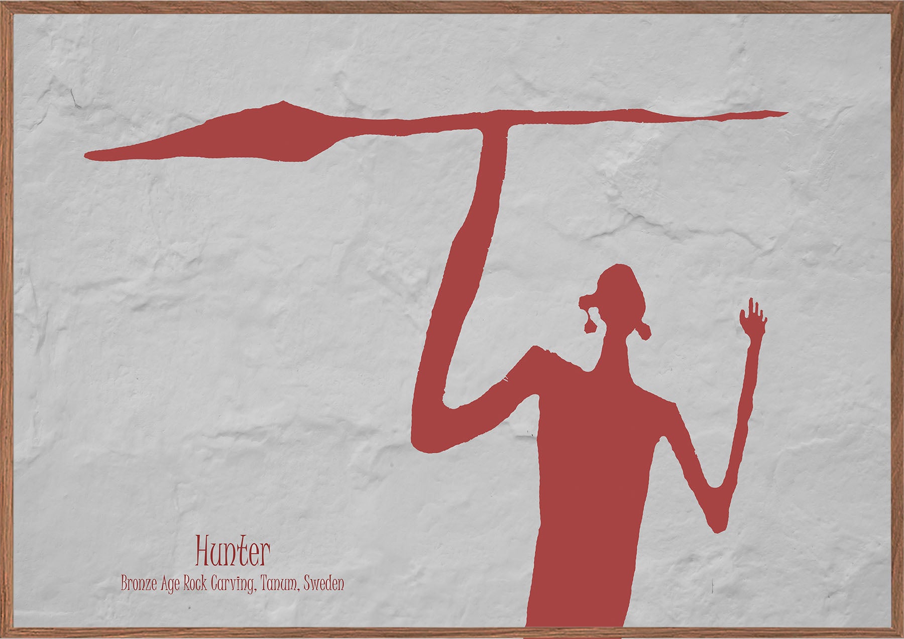 Plakat med helleristningen – Jæger – fra Tanum i Vestsverige, også kaldet Tanumshede, som i 1994 blev optaget på UNESCO’s verdensarvsliste på grund af de extremt mange helleristninger fra bronsealderen (fra ca. 1800 til 600 f.kr.).
