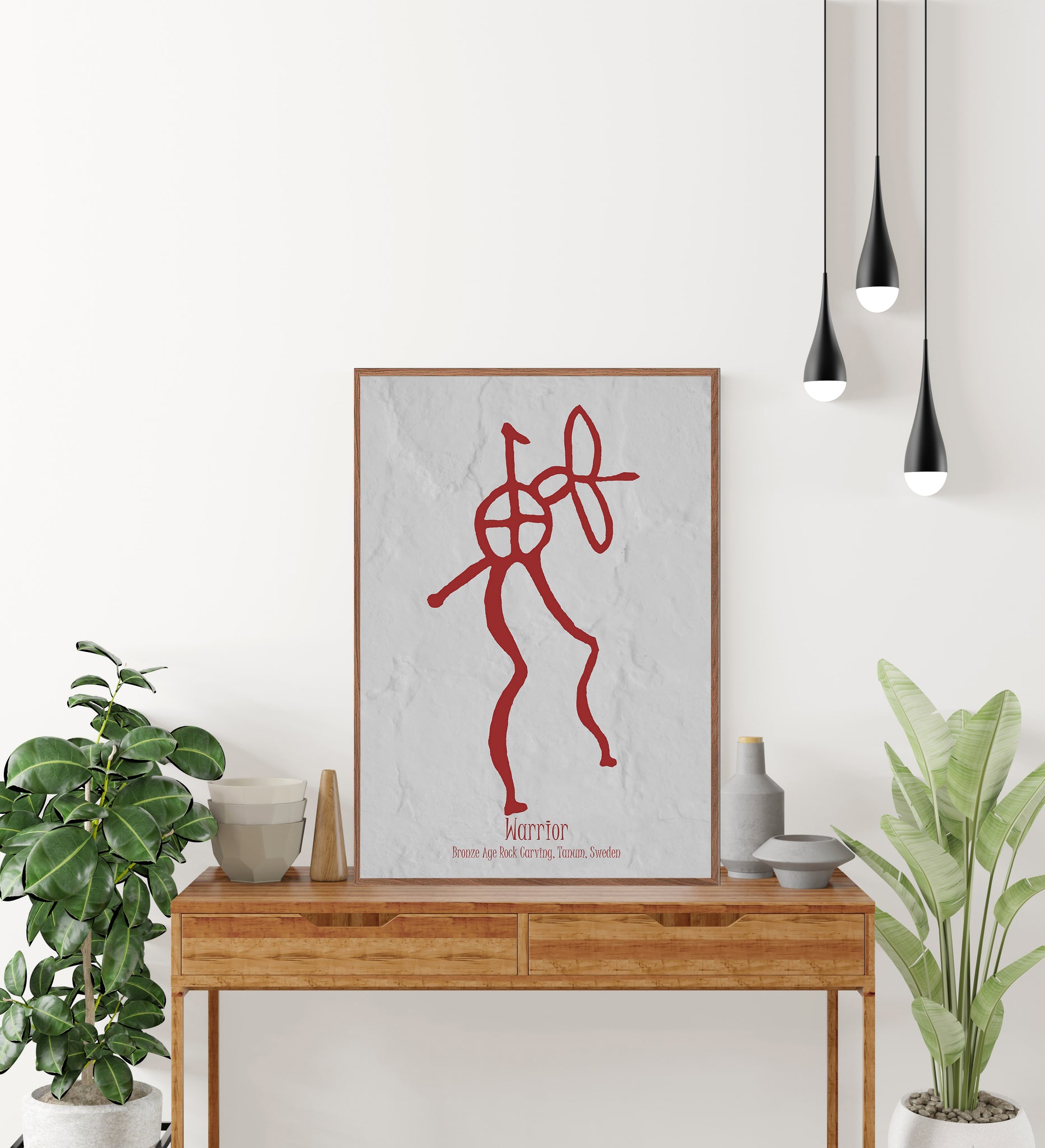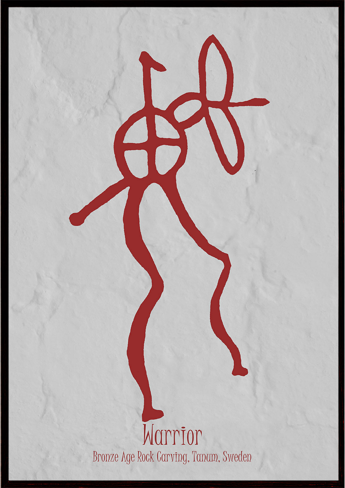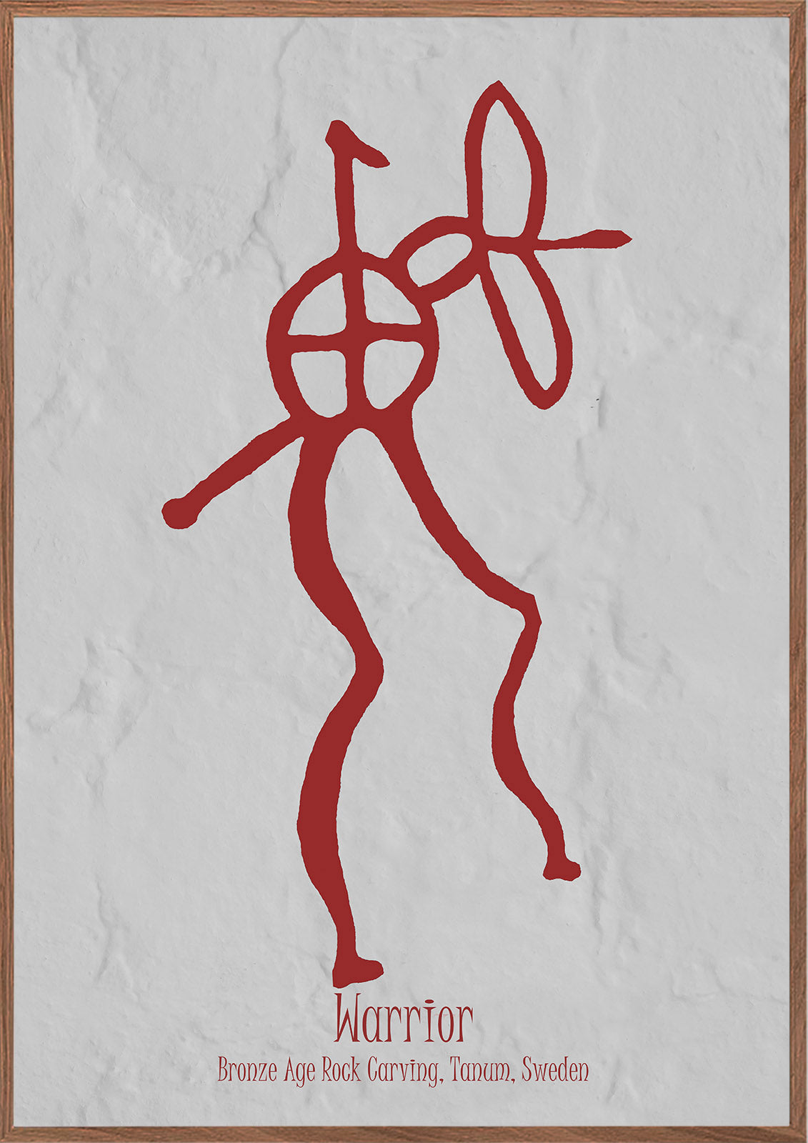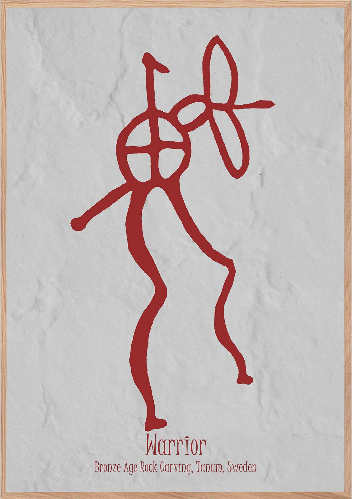 Plakat med helleristningen – Kriger – fra Tanum i Vestsverige, også kaldet Tanumshede, som i 1994 blev optaget på UNESCO’s verdensarvsliste på grund af de extremt mange helleristninger fra bronsealderen (fra ca. 1800 til 600 f.kr.).