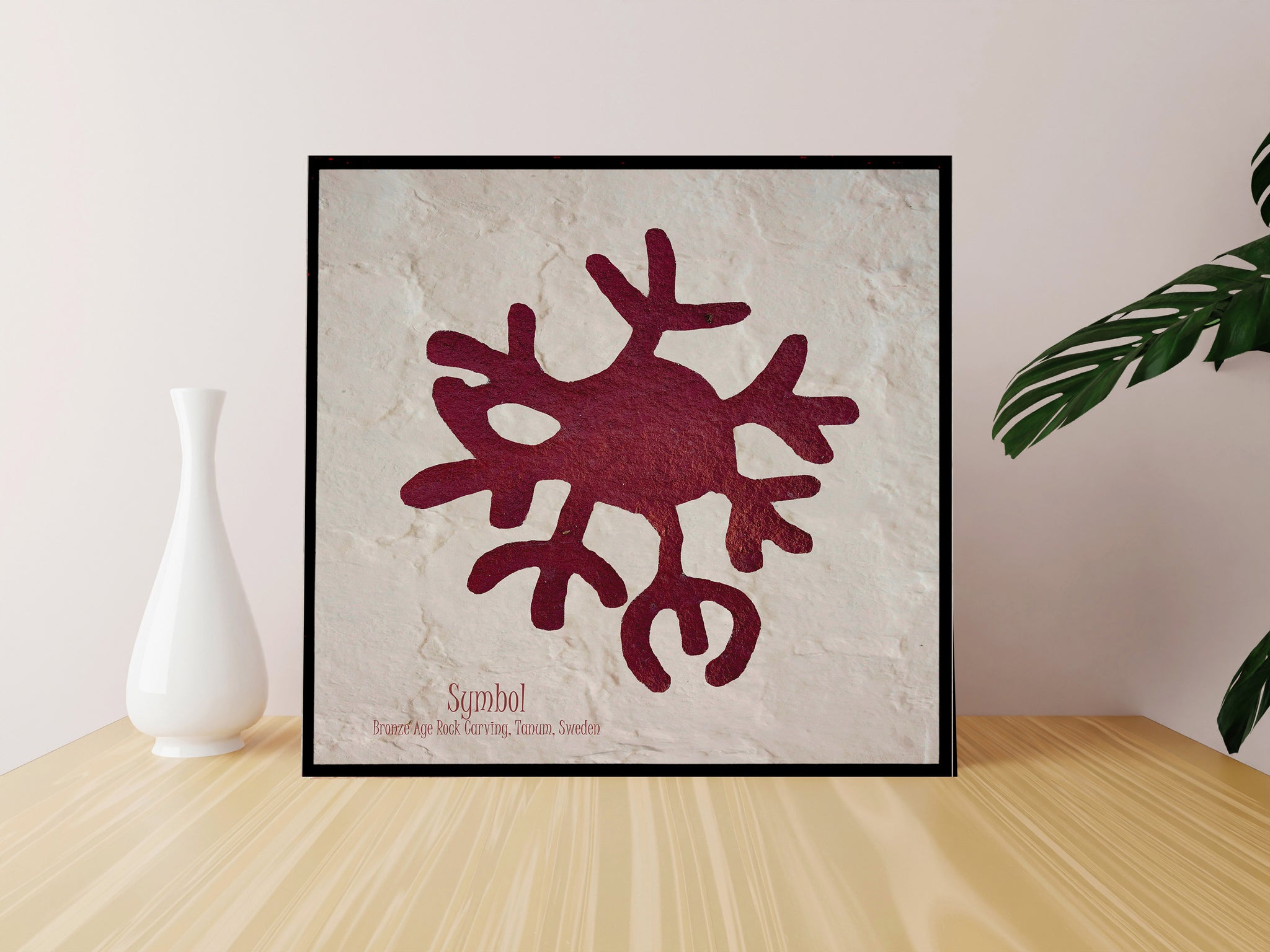 Plakat med helleristningen – Symbol – fra Tanum i Vestsverige, også kaldet Tanumshede, som i 1994 blev optaget på UNESCO’s verdensarvsliste på grund af de extremt mange helleristninger fra bronsealderen (fra ca. 1800 til 600 f.kr.).