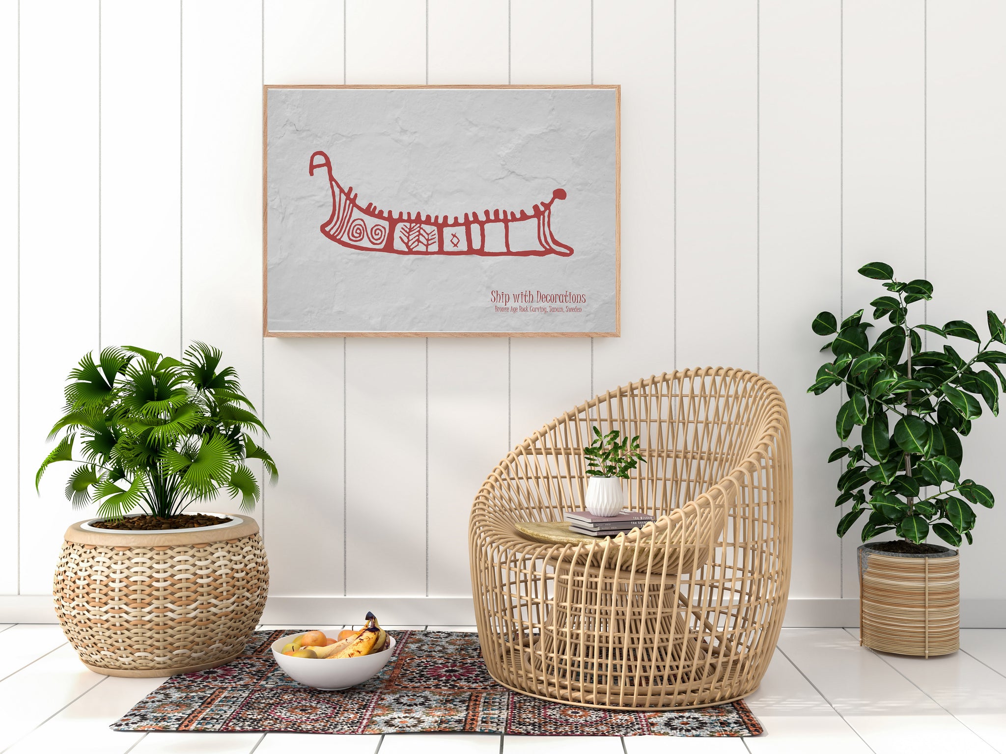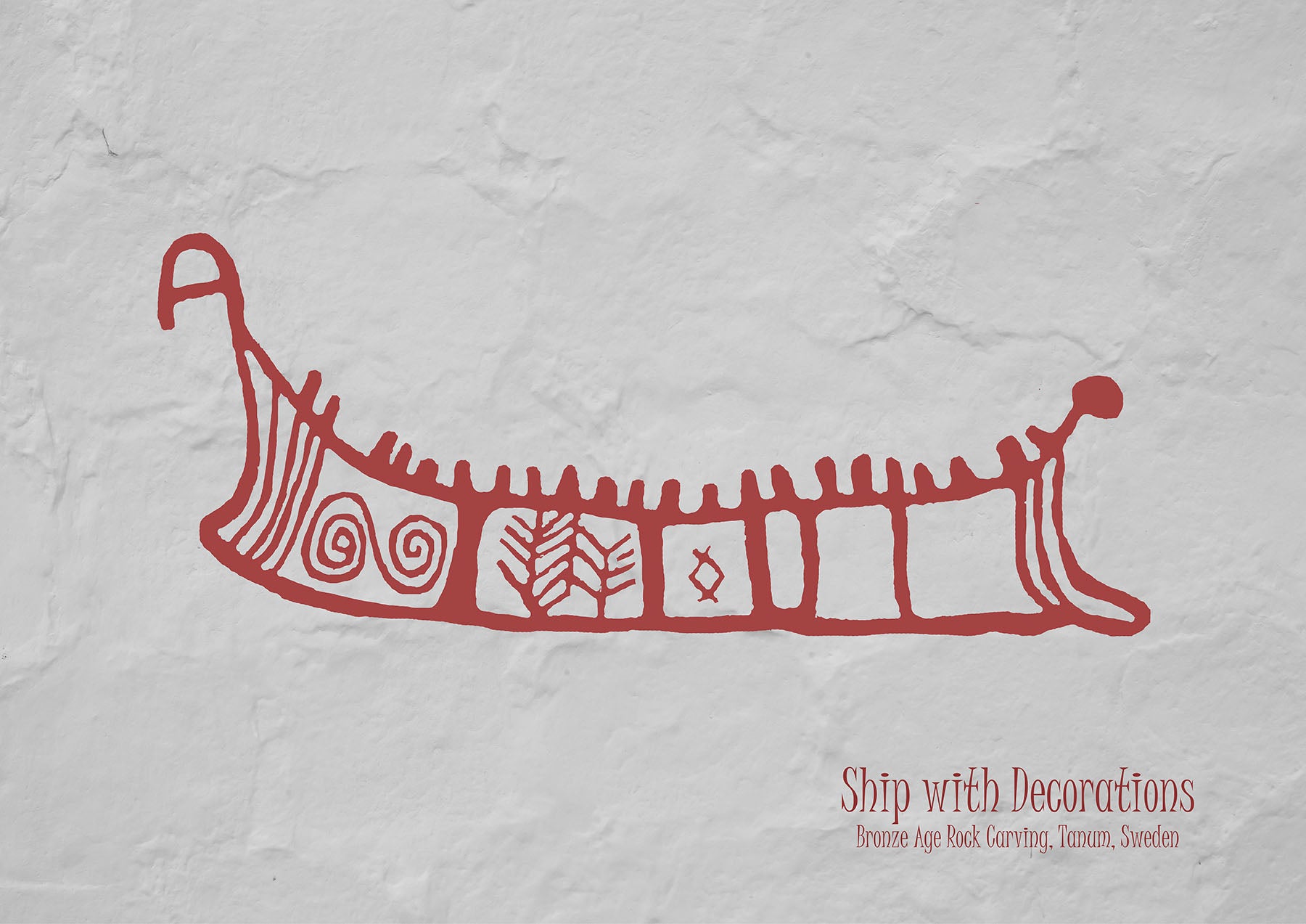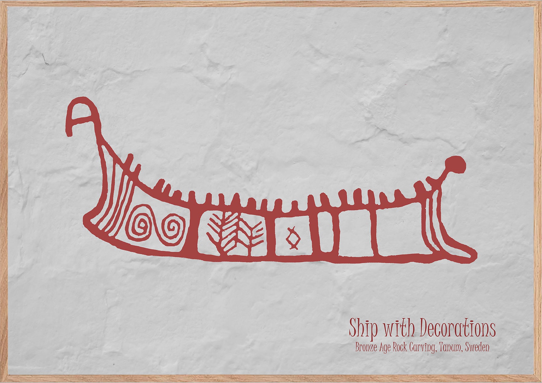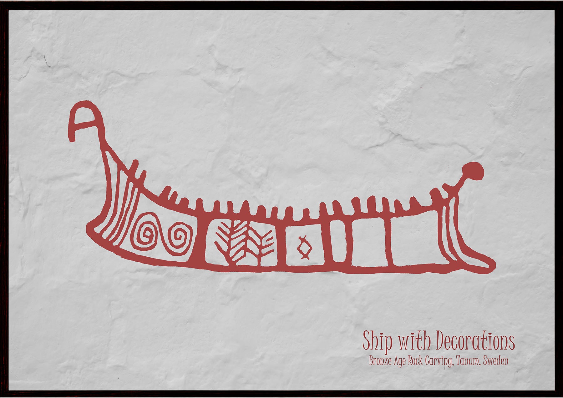 Plakat med helleristningen – Skib – fra Tanum i Vestsverige, også kaldet Tanumshede, som i 1994 blev optaget på UNESCO’s verdensarvsliste på grund af de extremt mange helleristninger fra bronsealderen (fra ca. 1800 til 600 f.kr.).