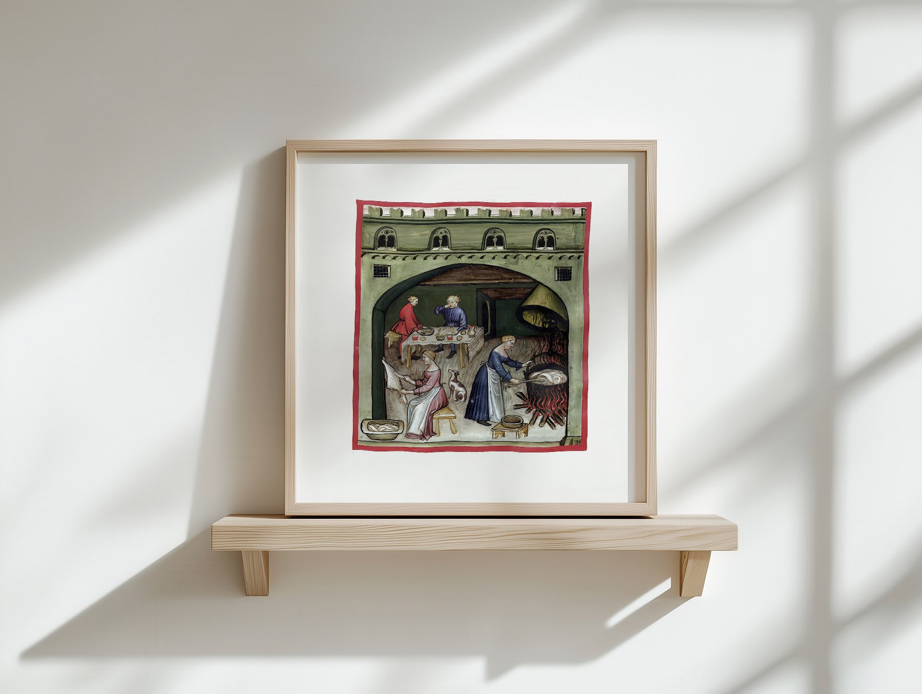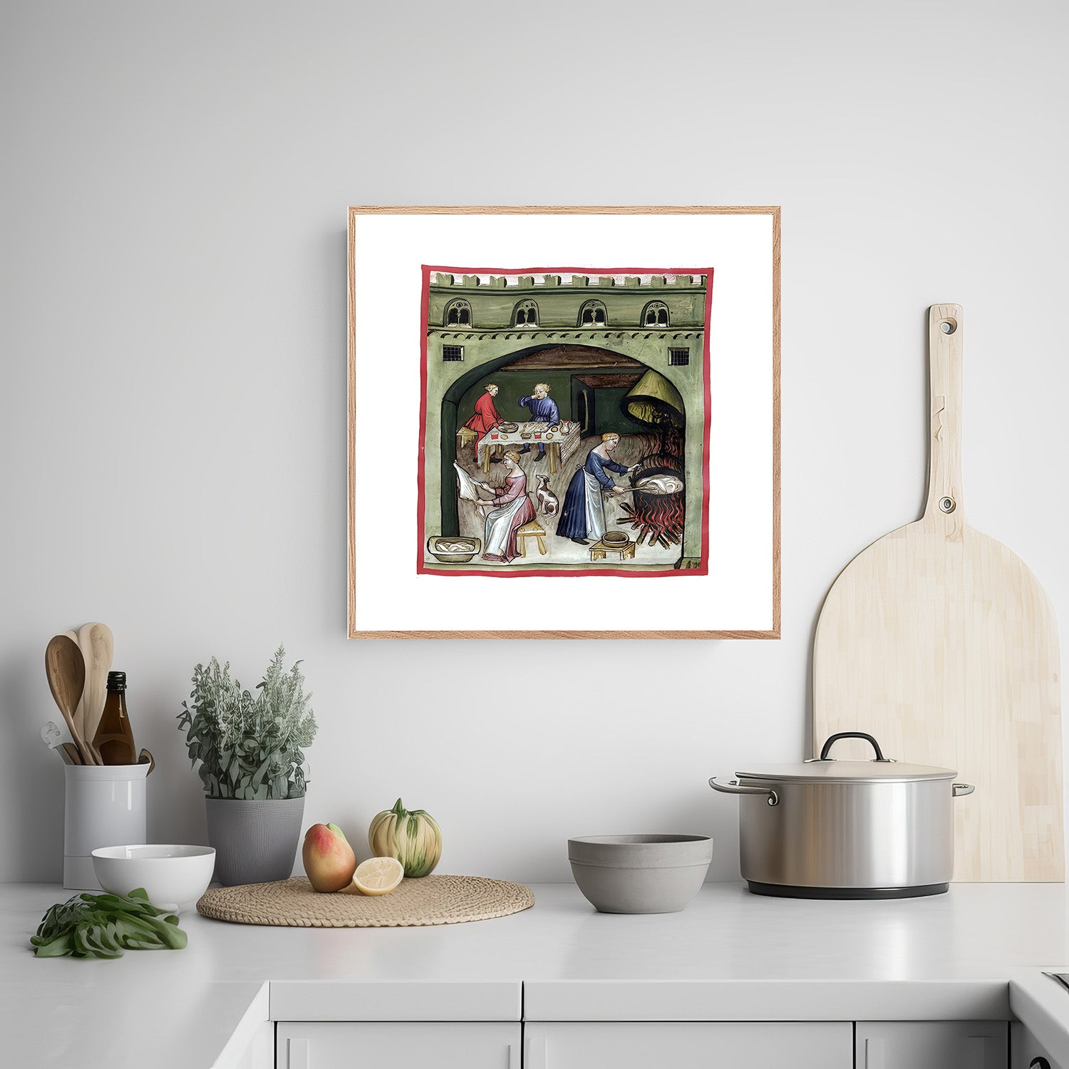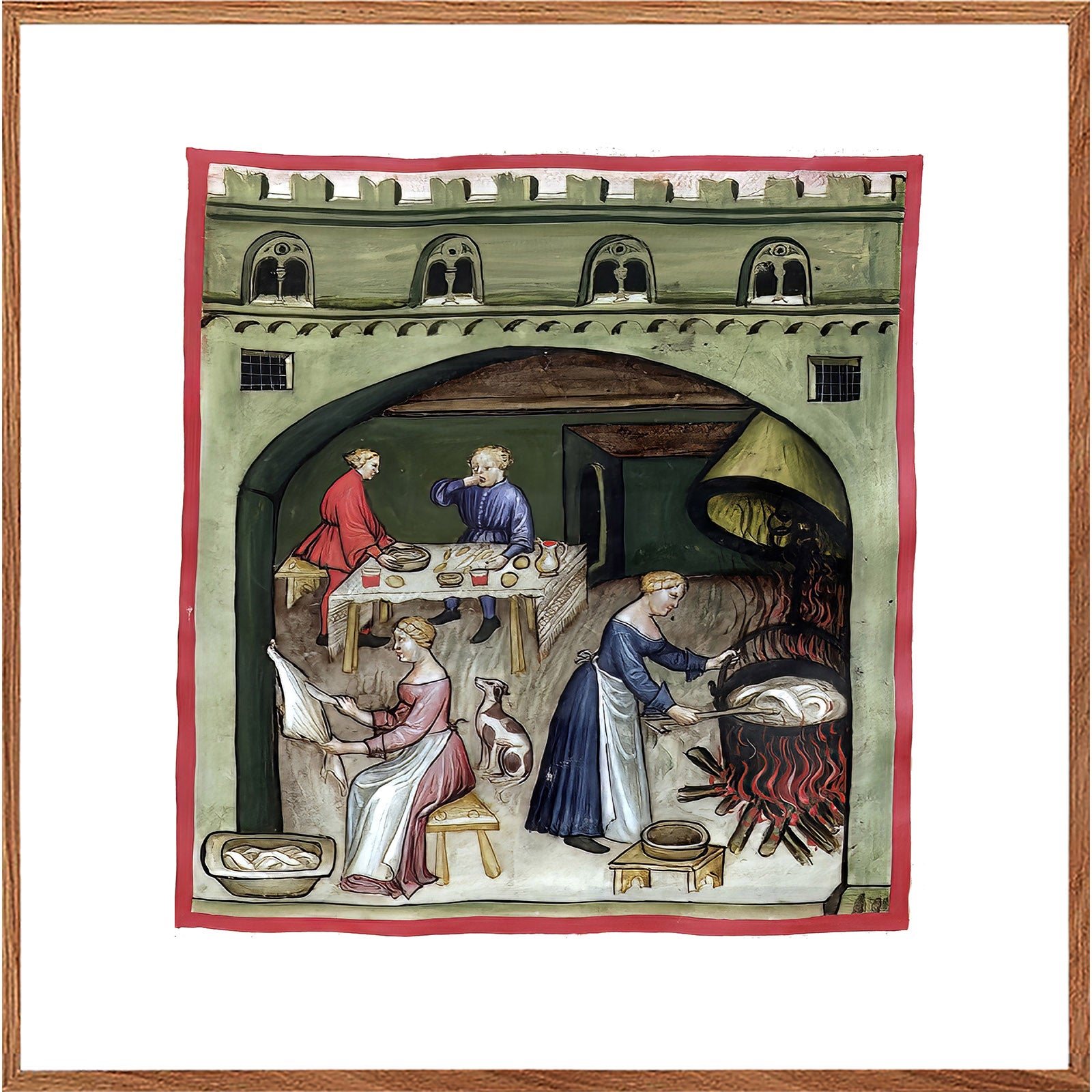 Motivet er et af de mange farvelagte illustrationer i ‘håndbogen’, Taccuinum Sanitatis, fra omkring det 14. århundrede, som var meget populær blandt den kulturelle ilite. Hver side i bogen, havde en håndtegning med et farvelagt motiv og en bekrivende tekst på latinsk. Emnet for hver side var produktion af mad og havebrug.